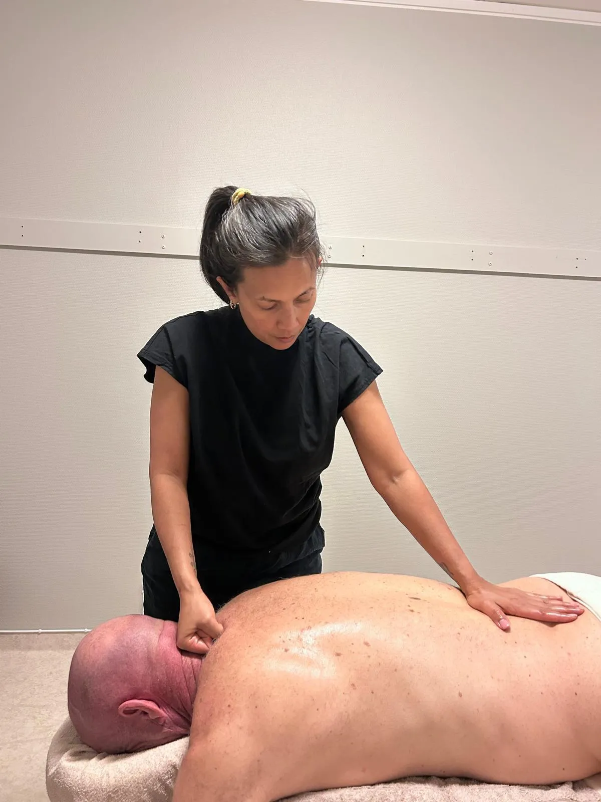 Under ryggmassagen löser jag upp spänningar med djupa och mjuka grepp, ökar blodcirkulationen och frigör stelhet så att du känner dig avslappnad och rörligare.